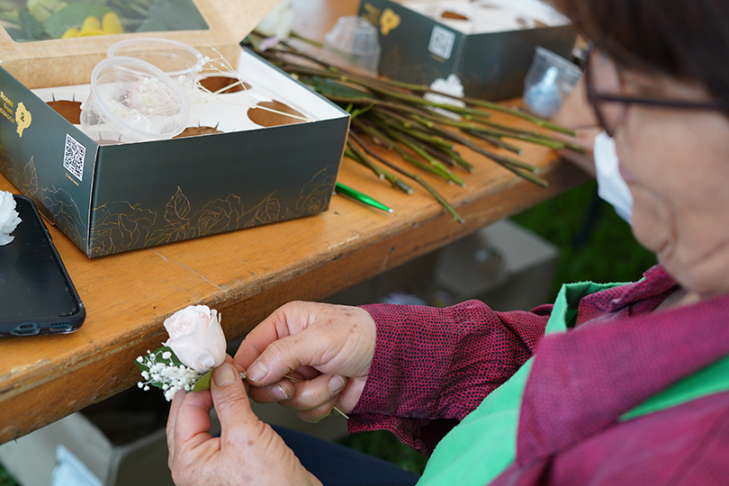 One of the highlights was an interactive boutonniere-making workshop led by Giovy from Southern Blossom Flowers. Guided by her expertise, each florist created a unique boutonniere using a mini preserved rose from LULU, included in every kit we provided. This hands-on experience emphasized how our preserved roses are ideal for intricate accessories—adding elegance, longevity, and emotional value to every creation.